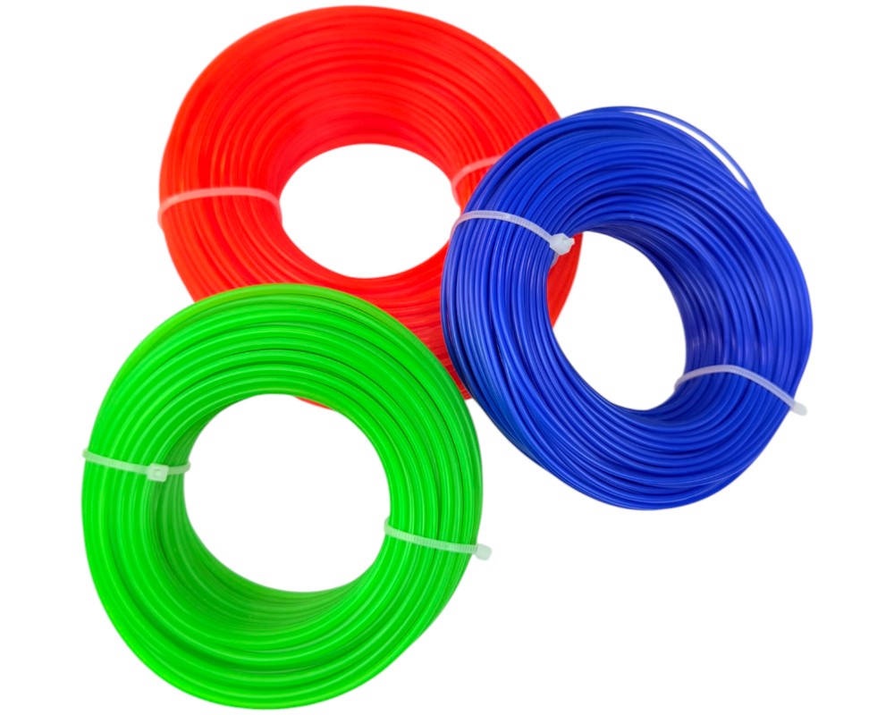 Trimmersnøren er en fleksibel nylontråd, der roterer med høj hastighed og skærer græs og ukrudt. I modsætning til en plæneklipper, som har faste knive, bruger græstrimmeren snorens centrifugalkraft til at lave et rent snit. Trimmersnøre fås i flere tykkelser og længder, typisk fra 1,6 mm til 3,0 mm, i ruller på 15 eller 50 meter. Når du vælger materiale, handler det om balancen mellem styrke, fleksibilitet og pris – de tyndere snører er lettere og mere præcise, mens de tykkere varianter er stærkere og mere holdbare.Dog kommer det an på maskinen, hvad den kan køre med.