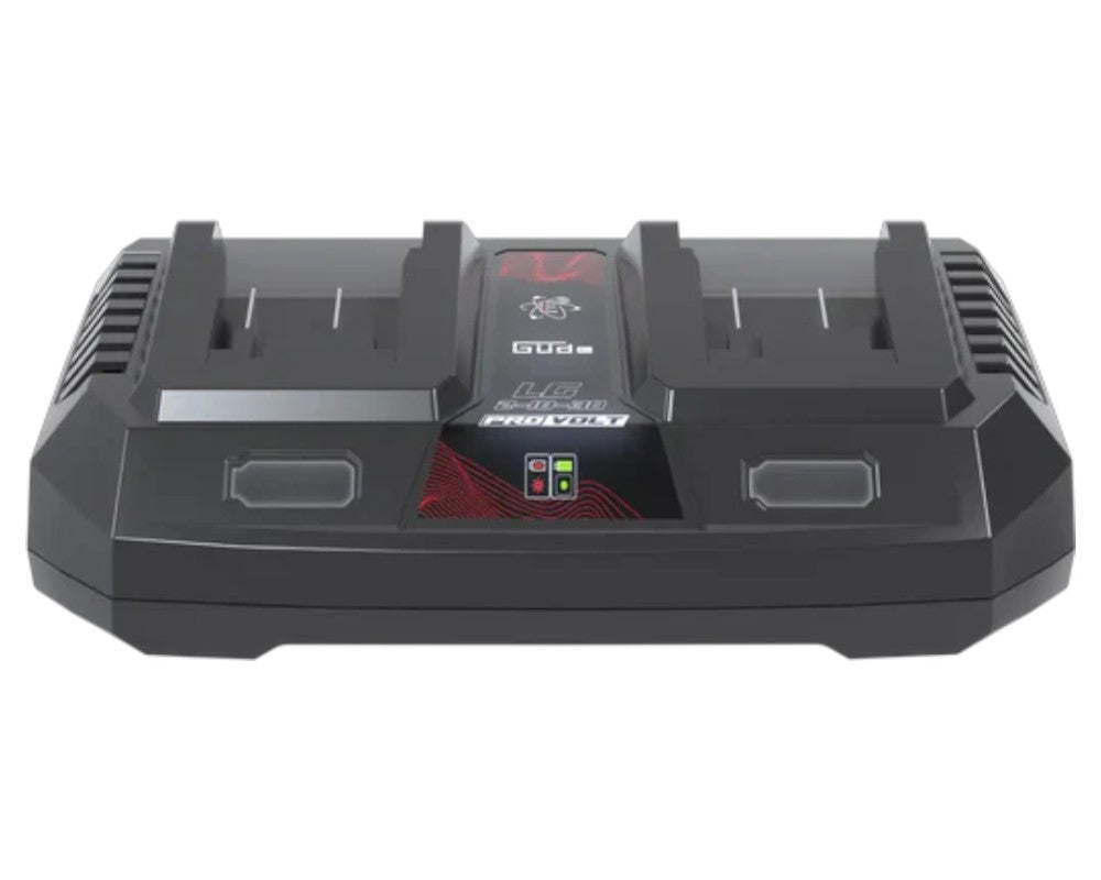 Effektiv og praktisk oplader, der kan oplade to 36V batterier samtidigt. Ideel så du altid har fuldt opladede batterier klar til brug. Kompakt design og nem i brug – perfekt til både værksted og havearbejde.